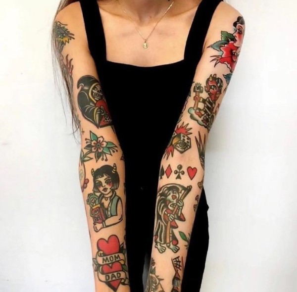 oldschool小臂纹身 18款彩色oldschool风格的小手臂纹身图