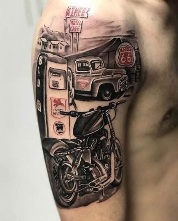 摩托车爱好者们身上帅气的摩托车纹身图案