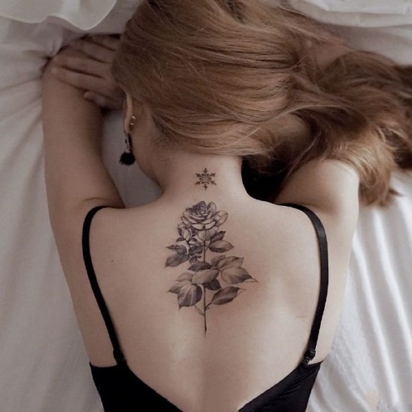 女性各部位的9款黑灰色素花纹身图片