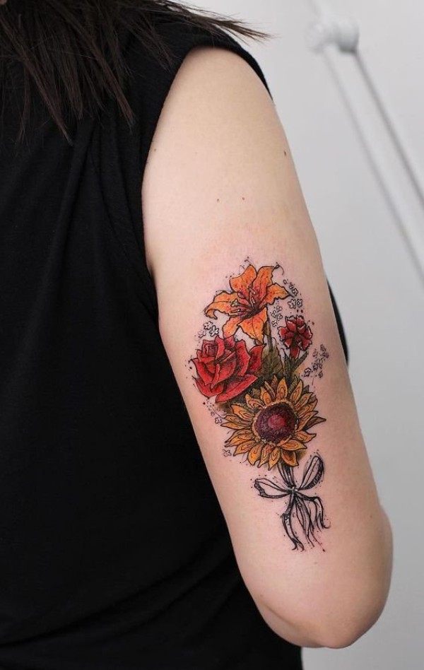适合女生的一组很漂亮的小清新向日葵纹身图