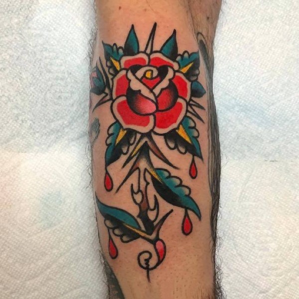 9张oldschool风格的花朵纹身图片