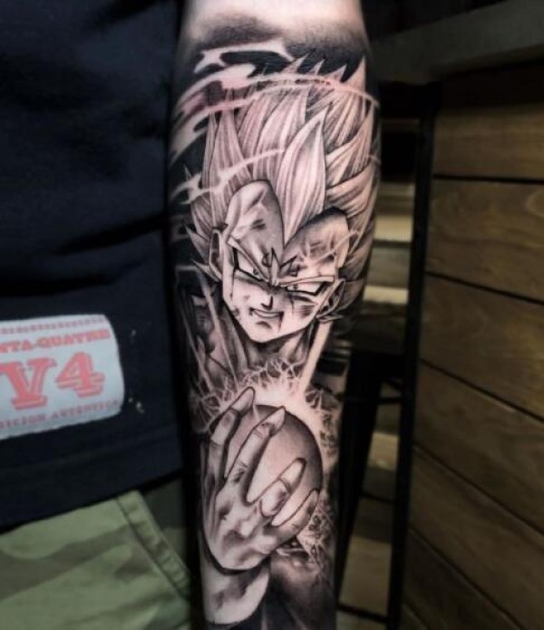 一套欧美动画片角色写实黑灰手臂纹身作品