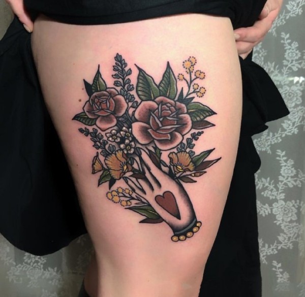 纹身oldschool花朵 复古school风格的9张花卉纹身图片