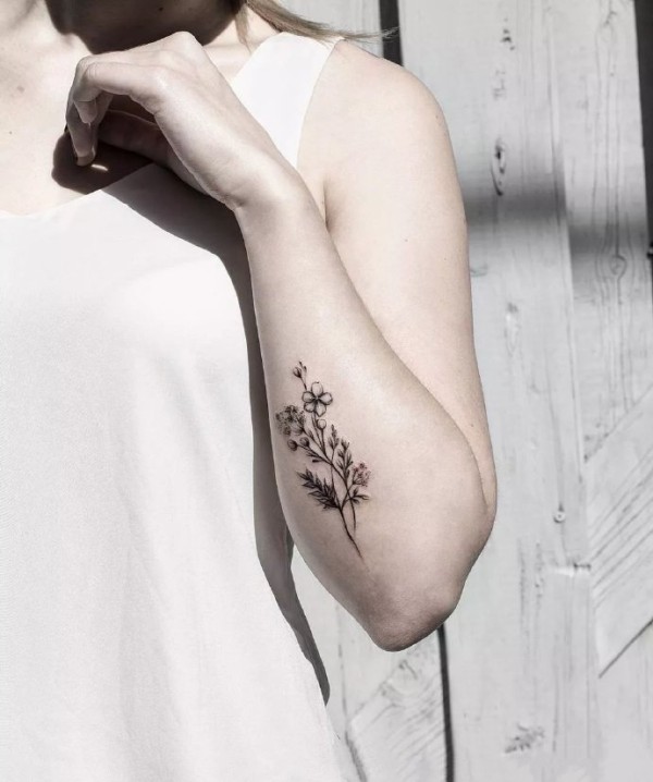大臂素花纹身 9款女士的大臂黑灰花朵植物纹身图案