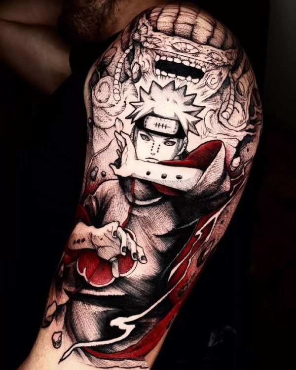 手臂上的火影忍者鸣人佐助卡卡西等角色动漫纹身图案