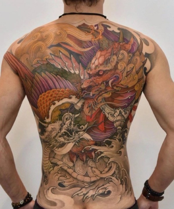日本彩色新传统传奇人物纹身动物图案纹身 by Yushi Tattoo