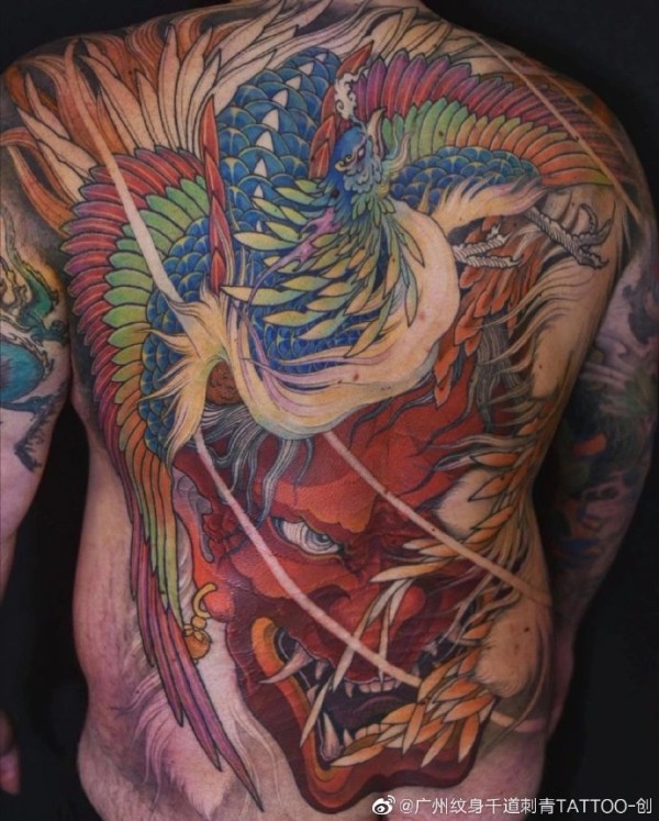 新传统风格的9张男性黑灰大满背纹身图案图片