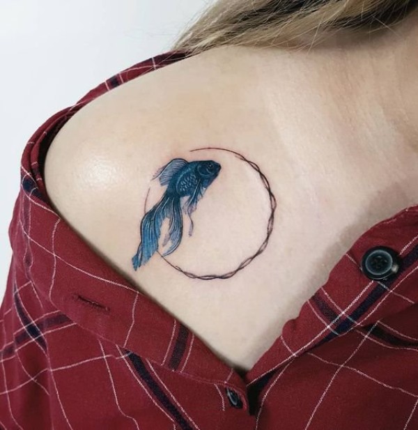 9张唯美的肩头小鱼纹身图片