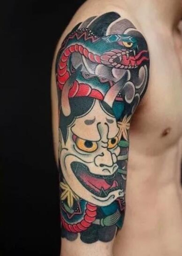 能面万媚纹身手稿_52张日式能剧面具纹身手稿图案素材欣赏