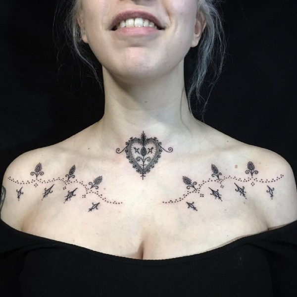 女性胸口的9张简约风纹身图片