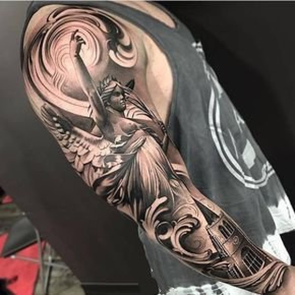 腿部黑灰天使纹身图案_天使纹身图案大全_纹身图吧