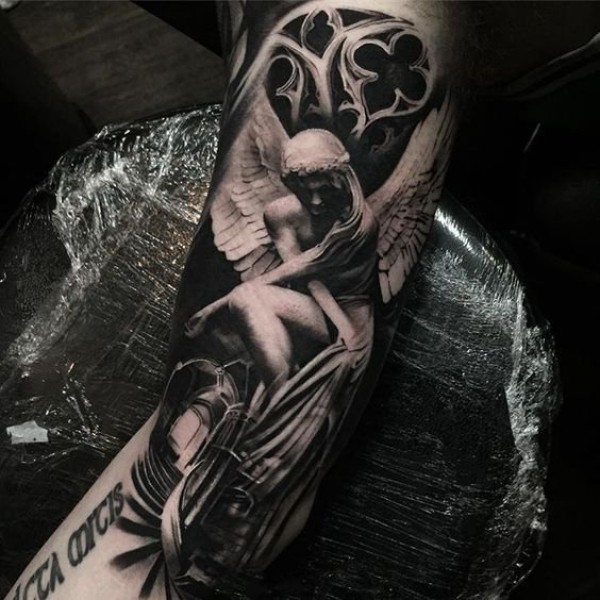 腿部黑灰天使纹身图案_天使纹身图案大全_纹身图吧