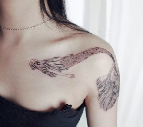 纹身美人鱼 魅力动人的美人鱼纹身图案