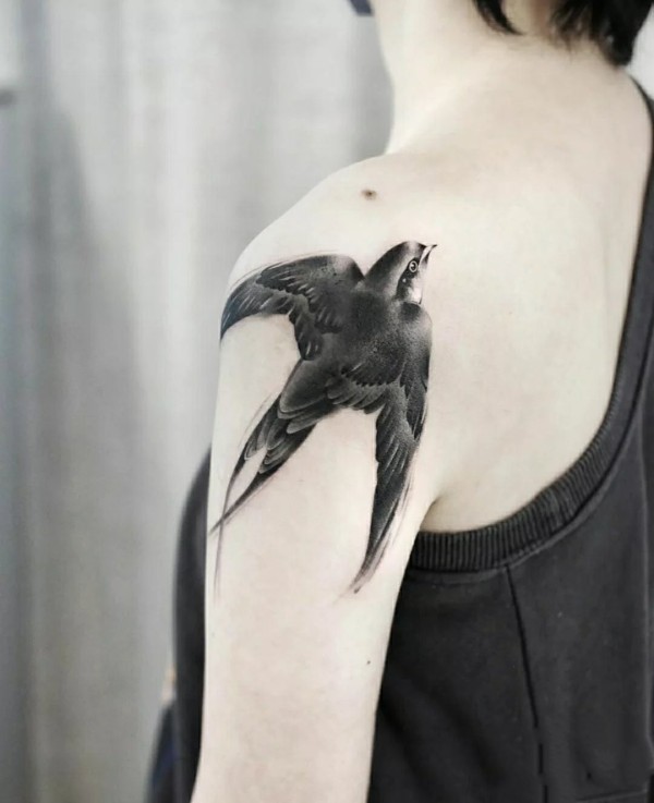 适合纹在肩背的9张水墨风纹身图片