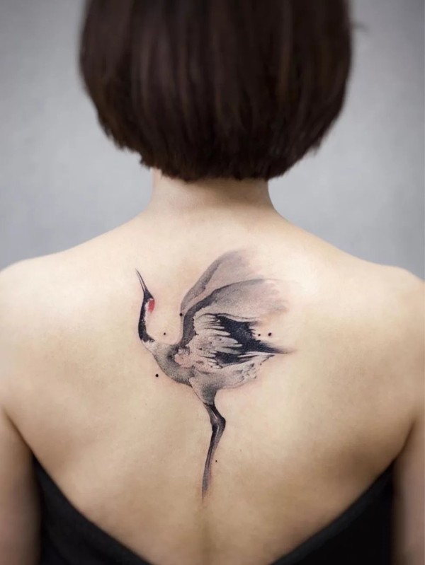 仙鹤纹身--中国风水墨元素的一组仙鹤纹身图案作品