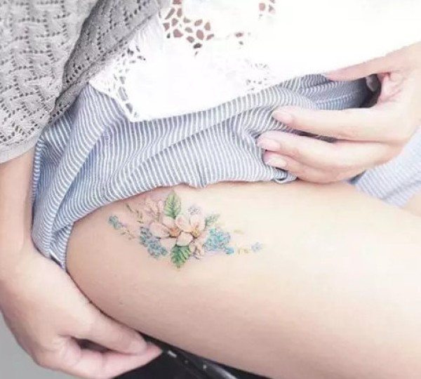 腿部纹身女 9组女性大腿侧部性感纹身作品图
