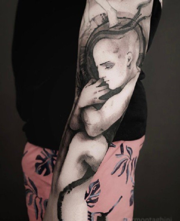 欧美花臂纹身_22张霸气黑灰欧美大黑花臂纹身图案作品图片