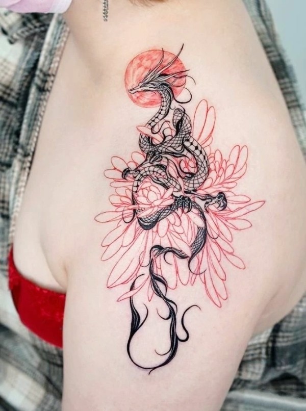 披肩龙纹身图案图片_龙纹身图案大全_纹身图吧