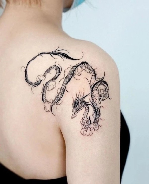 披肩龙纹身图案图片_龙纹身图案大全_纹身图吧