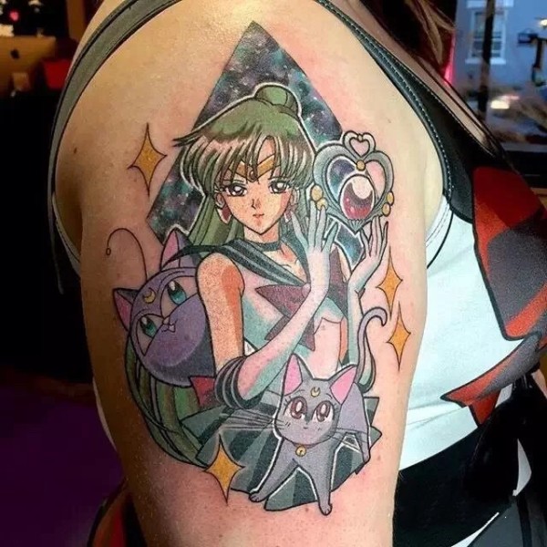 一组手臂和小腿上的动漫人物纹身图案欣赏