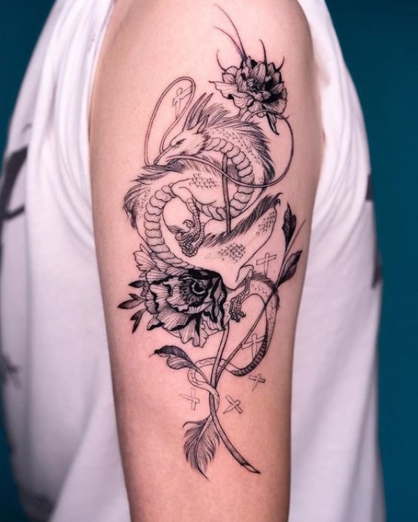 披肩龙纹身图案图片_龙纹身图案大全_纹身图吧