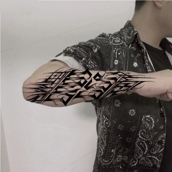 9张胳膊上很有个性的黑色英文花体字纹身图案