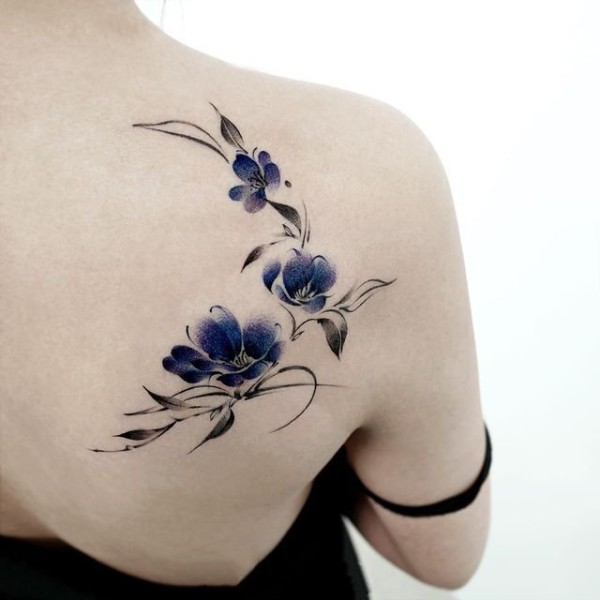 9张好看的水墨花卉纹身图片