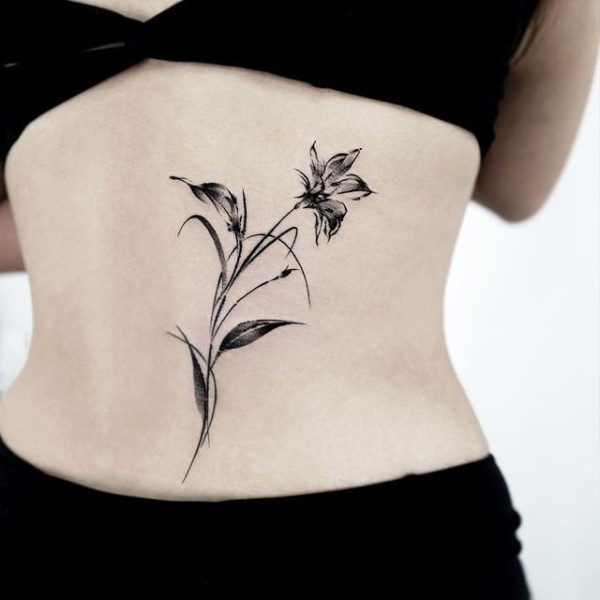 性感花朵纹身--女性大腿侧部性感的花朵纹身