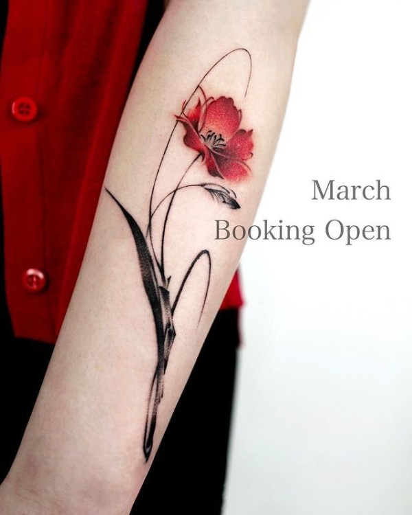 罂粟花纹身图--几张红色艳丽的唯美罂粟花纹身图案作品
