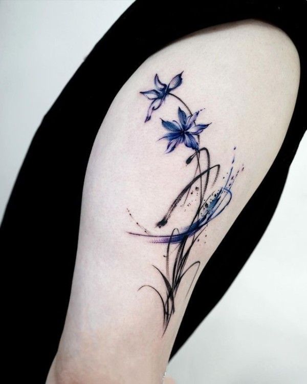 性感花朵纹身--女性大腿侧部性感的花朵纹身