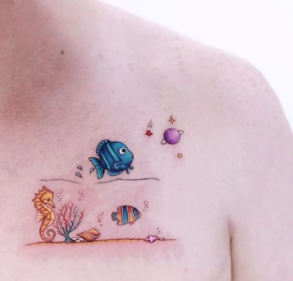 双鱼座纹身手稿_45张十二星座之双鱼手稿纹身图案