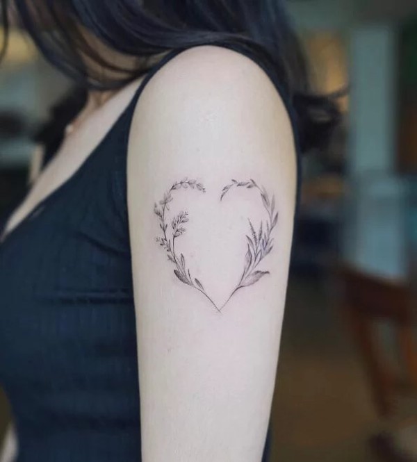 爱心小纹身--一组花花草草组成的心形小清新纹身图案