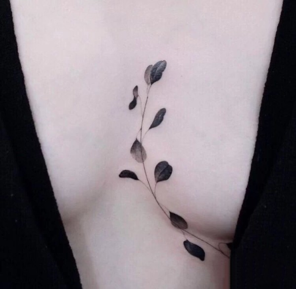 线条花草纹身--9张黑灰花草线条纹身图案图片