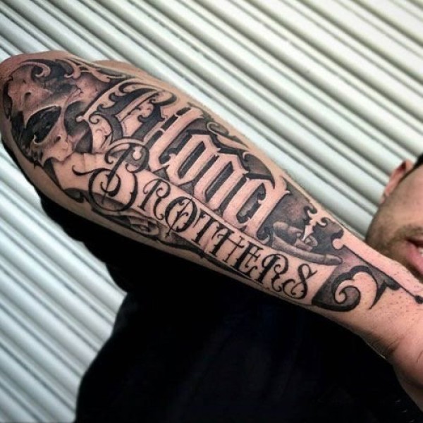 9张胳膊上很有个性的黑色英文花体字纹身图案
