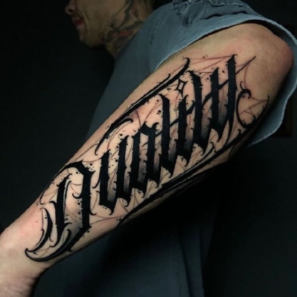 9张胳膊上很有个性的黑色英文花体字纹身图案