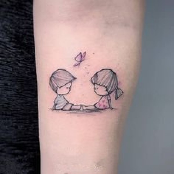 两个孩子的肖像纹身