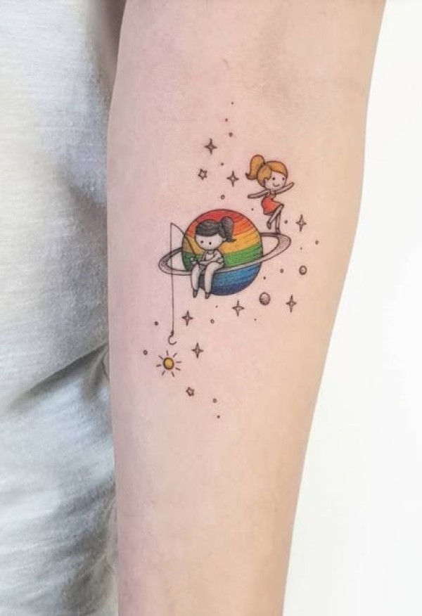女孩子小手臂音符反战无限爱心图标纹身图案