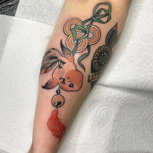 金鱼纹身 漂亮的9张唯美彩色小金鱼纹身图案