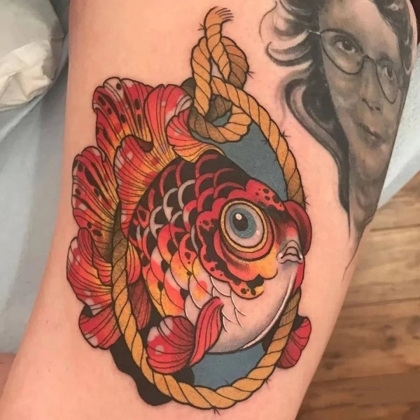金鱼纹身 漂亮的9张唯美彩色小金鱼纹身图案