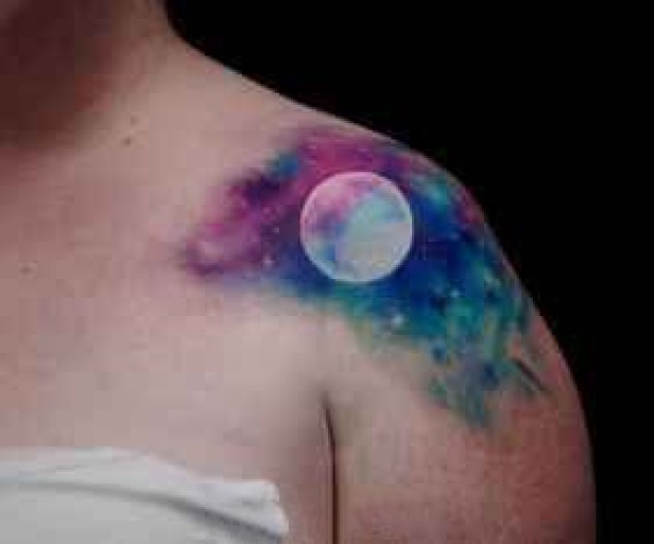大臂上的蓝色星空月球纹身显独特
