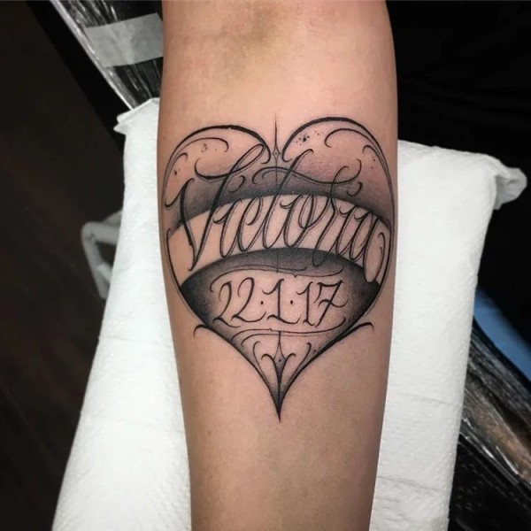 女生锁骨下黑灰素描点刺技巧创意比心纹身图片
