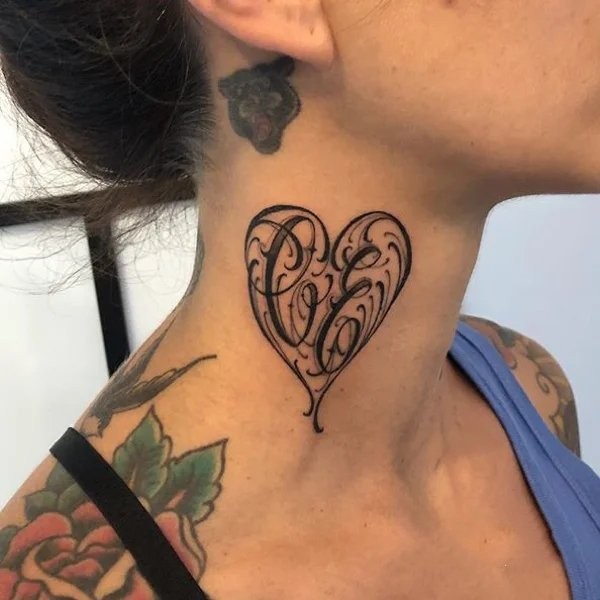 女生锁骨下黑灰素描点刺技巧创意比心纹身图片