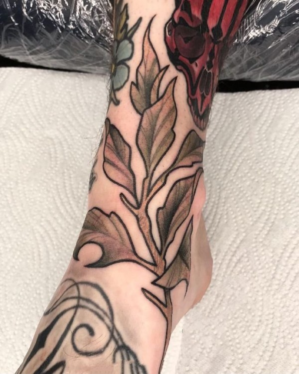 欧美new school蛇树叶纹身图案手稿