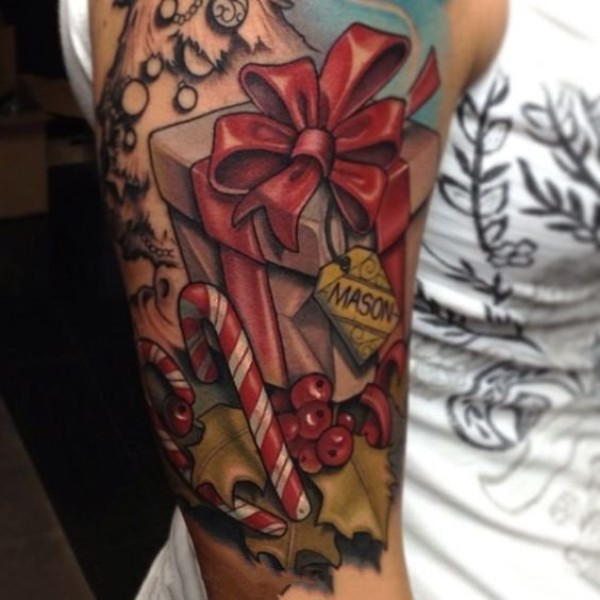 送给自己一棵挂满了礼物的圣诞树纹身