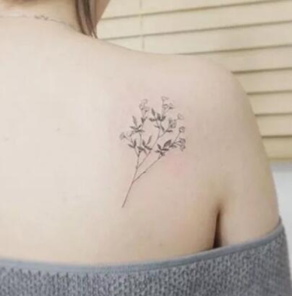 后肩唯美花藤英文图案图片_植物纹身图案大全_纹身图吧