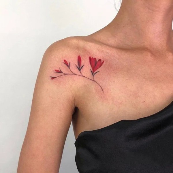 性感肩花纹身 适合女生的锁骨肩部花朵纹身图片