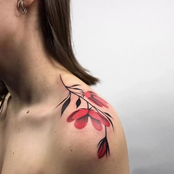 小清新肩花纹身 女生肩部的一组小清新花朵纹身图片