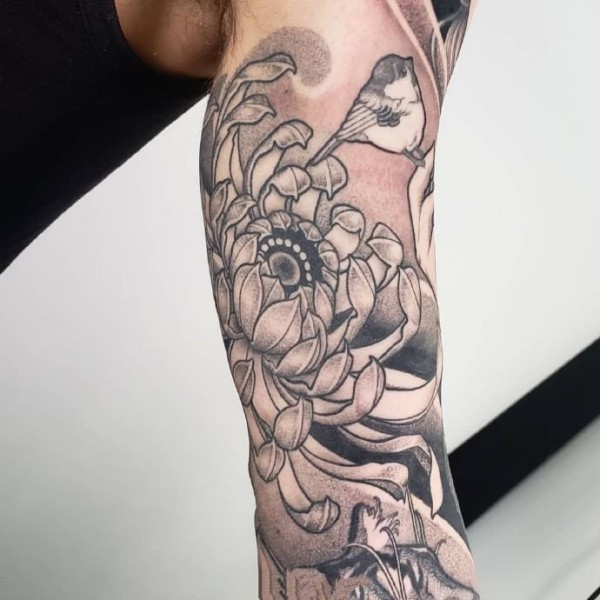 欧美花臂纹身_22张霸气黑灰欧美大黑花臂纹身图案作品图片