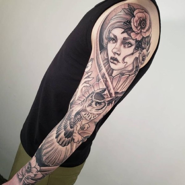 欧美花臂纹身_22张霸气黑灰欧美大黑花臂纹身图案作品图片