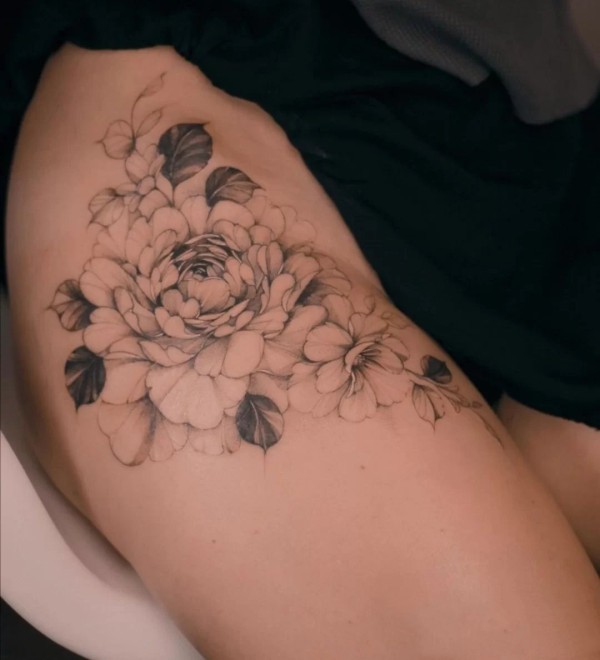 性感大腿纹身 女士大腿处性感的花花纹身图片